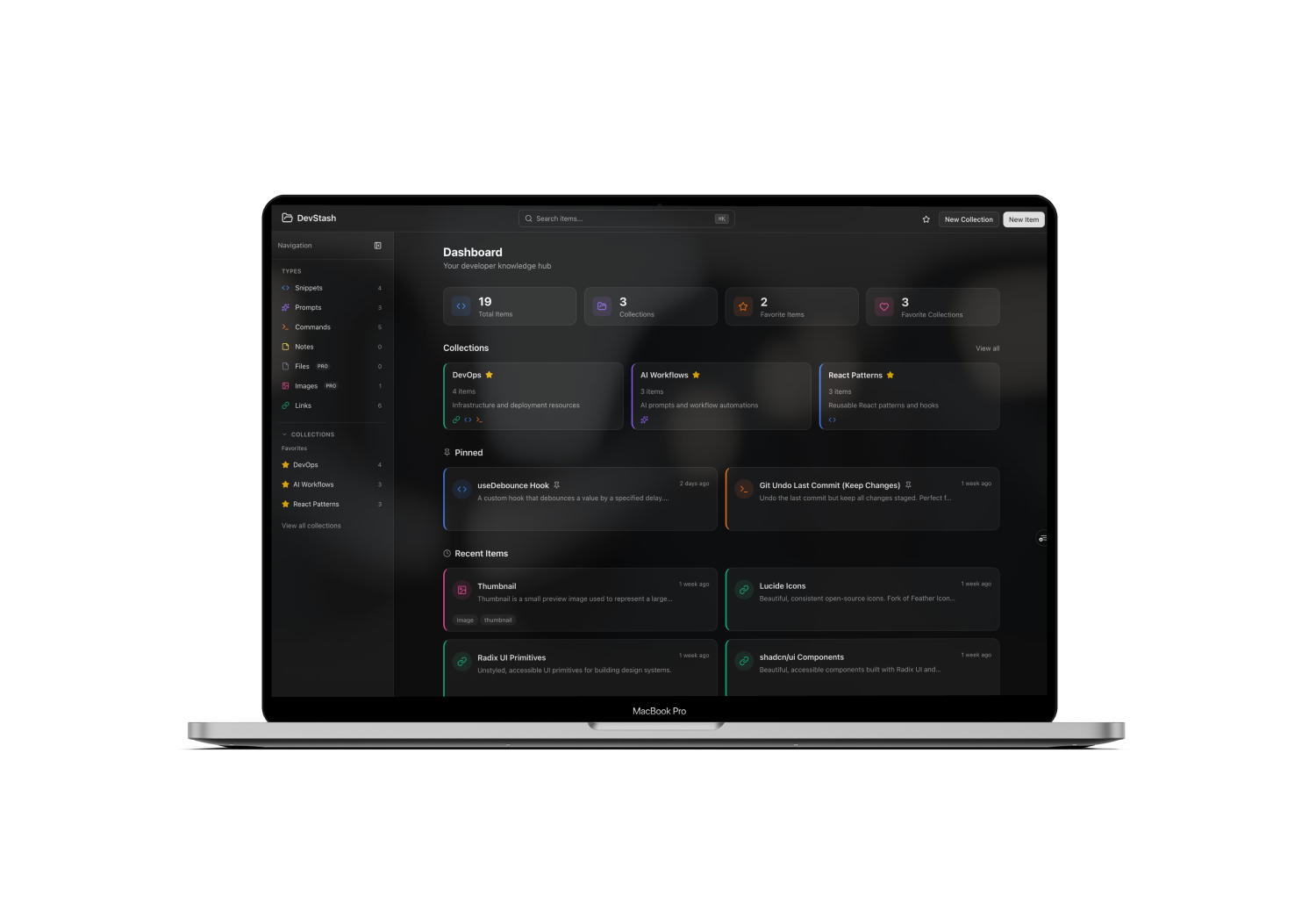 We will use the AI workflow you'll learn to build a developer knowledge and resource hub called DevStash. A place to store snippets, prompts, commands, files and more.